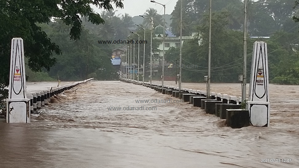 ಕಾಳಿ ಸೇತುವೆ ಮೇಲೆ ಹರಿದ ಪ್ರವಾಹ:: ದಾಂಡೇಲಿಯಲ್ಲಿ ಕಾಳಿ ನದಿಗೆ ಎರಡು ಸೇತುವೆಗಳಿವೆ. ಅದರಲ್ಲಿ ಹಳೆದಂಡೇಲಿ-ಬೈಲಪಾರ ಕೂಡಿಸುವ ಸೇತುವೆ ಹಳೆಯದ್ದಾಗಿದ್ದು, ಇದರ ಎತ್ತರ ಕೂಡಾ ಕಡಿಮೆಯಿದೆ. ಶುಕ್ರವಾರ ಮದ್ಯಾಹ್ನದ ಹೊತ್ತಿಗೆ ಕಾಳಿ ಪ್ರವಾಹ ಹೆಚ್ಚಾಗಿದ್ದು ಸೇತುವೆಯ ಮೇಲೆಯೇ ನೀರು ತುಂಬಿ ಹರಿದಿದೆ. ಸೇತುವೆಯ ಮೇಲೆ ಒಂದು ಮರ ಕೂಡಾ ಮುರಿದು ಬಿದ್ದಿದೆ. ಸೇತುವೆಯ ಮೇಲಿನ ಸಂಚಾರ ಸ್ಥಗಿತವಾಗಿದ್ದು, ಪೊಲೀಸ್ ಬದೋಬಸ್ತ ಒದಗಿಸಲಾಗಿದೆ. ಹಳೆದಾಂಡೇಲಿಯಲ್ಲಿ ಕಾಳಿ ನದಿ ದಂಡೆಯಲ್ಲಿ ನಿರ್ಮಾಣ ಹಂತದಲ್ಲಿದ್ದ ಕಾಳಿ ರಿವರ್ ಪಾರ್ಕ ಕೂಡಾ ನೀರಲ್ಲಿ ಮುಳುಗಿದೆ. ಅಳ್ನಾವರಕ್ಕೆ ನೀರು ಸಾಗಿಸುವ ಜ್ಯಾಕ್ವೆಲ್ ಕಾಮಗಾರಿ ಕೂಡಾ ಮುಳುಗಿದೆ.