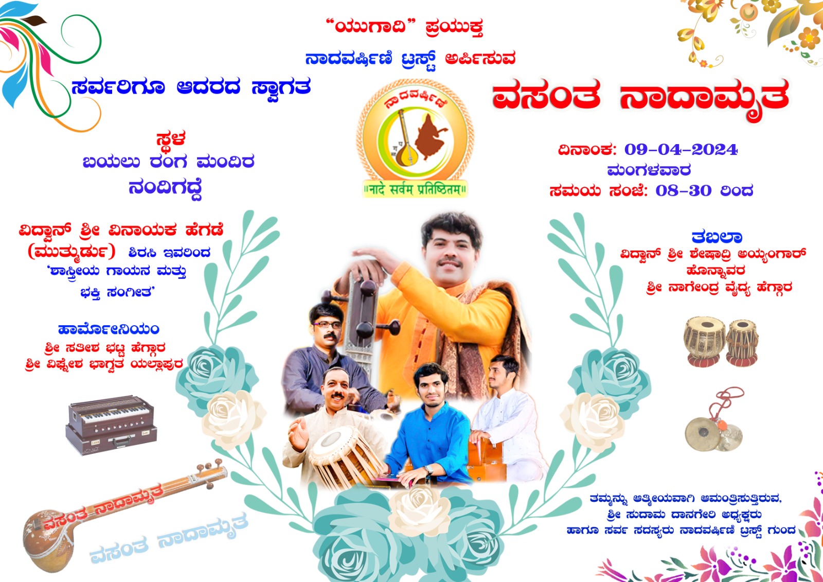 ಜೋಯಿಡಾ ತಾಲೂಕಿನ ಗುಂದದ ನಾದವರ್ಷಣಿ ಟ್ರಸ್ಟ್ ನಿಂದ ಯುಗಾದಿ ಹಬ್ಬದ ಪ್ರಯುಕ್ತ ಏಪ್ರಿಲ್ 9 ರಂದು ‘ವಸಂತ ನಾದಮೃತ’ ಕಾರ್ಯಕ್ರಮ ನಡೆಯಲಿದೆ.