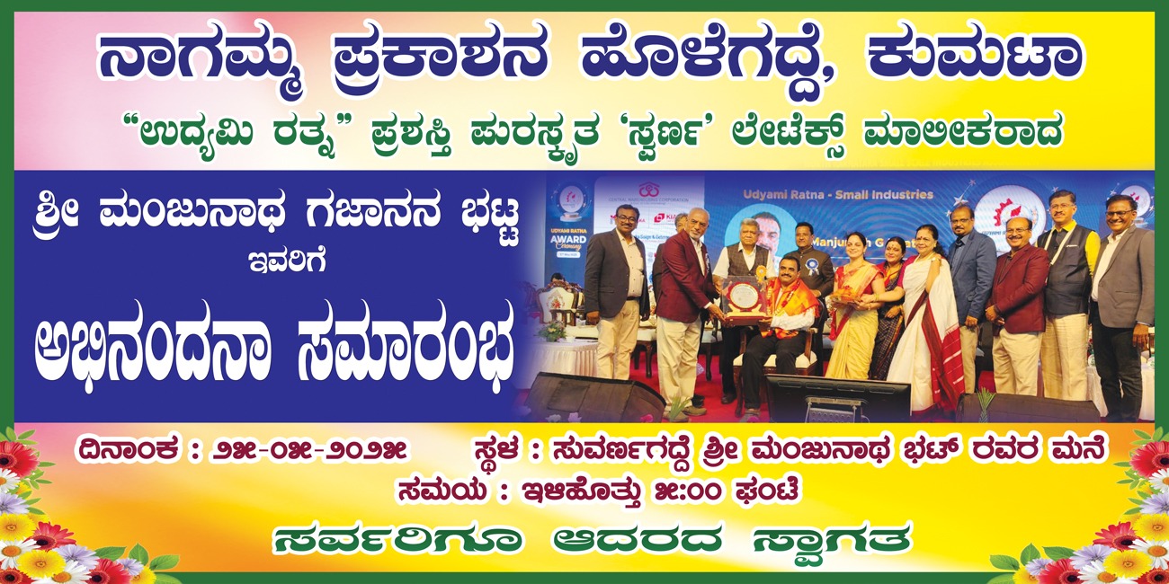 ಪ್ರಶಸ್ತಿ ಪುರಸ್ಕೃತ ಸ್ವರ್ಣ ಲೆಟೆಕ್ಸ್ ಮಾಲೀಕ ಮಂಜುನಾಥ್ ಭಟ್ ಮಾತನಾಡಿ, ಊರಿನವರಿಂದ ಪಡೆದ ಪ್ರಶಸ್ತಿಗೆ ಬೆಲೆ ಕಟ್ಟಲು ಸಾಧ್ಯವಿಲ್ಲ. ಈ ಪ್ರಶಸ್ತಿಯನ್ನು ನನ್ನ ಕಂಪನಿಯ ಎಲ್ಲಾ ನೌಕರರಿಗೆ ಅರ್ಪಿಸುತ್ತೇನೆ. ಜೀವನದಲ್ಲಿ ಎದುರಾದ ಸಮಸ್ಯೆಗಳನ್ನು ಪರಿಹರಿಸುವ ಎದೆಗಾರಿಕೆಯೊಂದಿಗೆ ಮುನ್ನಡೆದಾಗ ಮಾತ್ರ ನಮ್ಮ ಗುರಿ ಮುಟ್ಟಿ ನಾವು ಬಯಸಿದ್ದನ್ನು ಪಡೆಯಬಹುದು. ಪ್ರೀತಿ ವಿಶ್ವಾಸದಿಂದ ಇಟ್ಟ ಹೆಜ್ಜೆ ಬದುಕಿನ ದಿಕ್ಕನೆ ಬದಲಾಯಿಸಲು ಸಾಧ್ಯ ಎಂದರು.