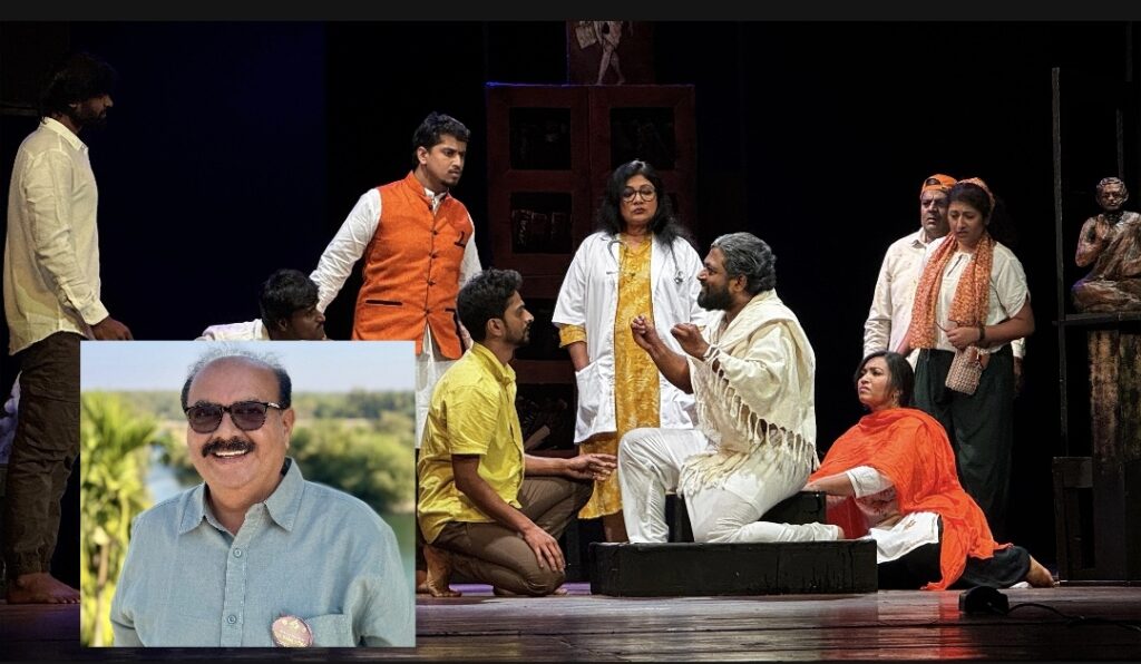 ನಿರ್ದೇಶಕರು, ಚಿತ್ರಿಕೆಯಂಥ ಸರಳವಾದ ಸೆಟ್ ನಲ್ಲಿ ನಾಟಕ ಕಟ್ಟುತ್ತಾರೆ. ಗಾಂಧಿಯ ಚಿತ್ರ, ಬಸವಣ್ಣನವರ ಮೂರ್ತಿ, ನಾಟಕದ ಆಶಯವನ್ನು ಧ್ವನಿಸುವಂತಿವೆ. ರಂಗದ ಮಧ್ಯಭಾಗದ ಪೀಠ ಮತ್ತು ಅದರ ಸುತ್ತಲಿನ ಪುಟ್ಟ ಕೊಳ ಪ್ರಭಾವಶಾಲಿಯಾಗಿ ಬಳಕೆಯಾಗಿದೆ. ಪ್ರಾರಂಭದಲ್ಲಿ ಸಮಾಜದ ಕೊಳೆ ತೊಳೆಯುವದನ್ನು ಸಂಕೇತಿಸುವಂತೆ ಪ್ರೊಫೆಸರ್ ಬಳಸುವ ಶುಭ್ರ ನೀರು ಅವರ ಕೊಲೆಯಾಗುತ್ತಿದ್ದಂತೆ ಕೆಂಬಣ್ಣಕ್ಕೆ ತಿರುಗುವದು ಒಂದು ರೀತಿಯ ಕಠೋರ ವ್ಯಂಗ್ಯವಾಗಿ ತೋರುತ್ತದೆ. ಕಾವೇರಿ, ಅಮರ ನ ದೃಶ್ಯಗಳ ನಿರ್ಮಿತಿ ಕಲಾತ್ಮಕವಾಗಿದೆ. ಅಮರ-ಪ್ರೊಫೆಸರ್ರ ದೃಶ್ಯಗಳನ್ನು ಶಕ್ತಿಯುತವಾಗಿ ಕಟ್ಟಲಾಗಿದೆ.