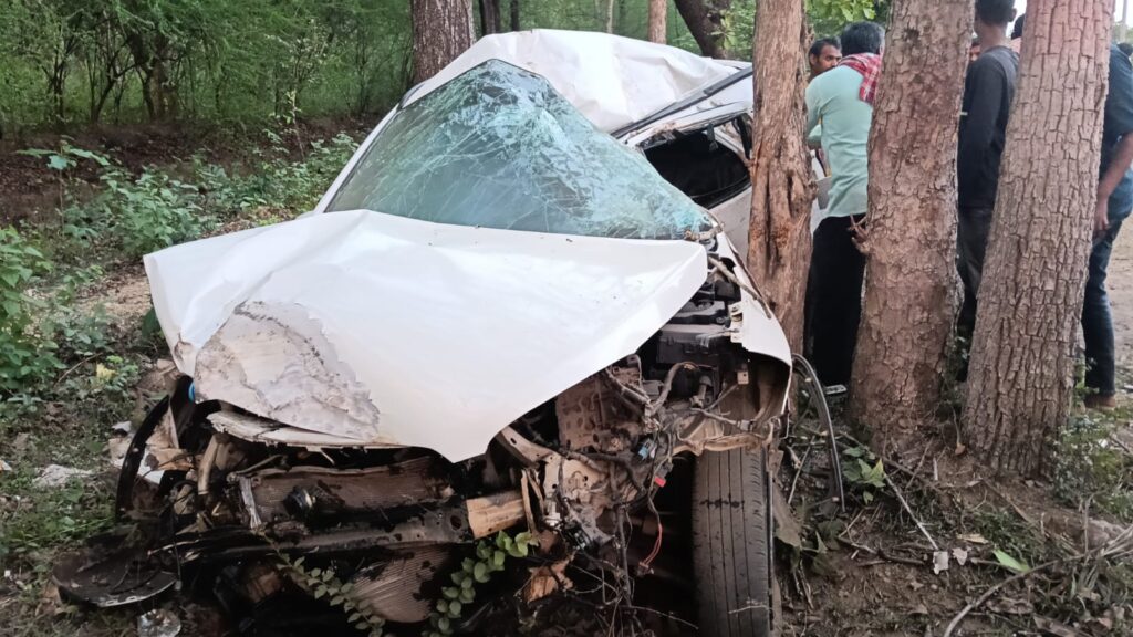 ದಾಂಡೇಲಿಯಿಂದ ಹಳಿಯಾಳ ಕಡೆಗೆ ತೆರಳುತ್ತಿದ್ದ ಸುಜಕಿ ಎಸ್ ಕಾರು ಚಾಲಕನ ನಿಯಂತ್ರಣ ತಪ್ಪಿದ ಮರಕ್ಕೆ ಡಿಕ್ಕಿ ಹೊಡೆದ ಪರಿಣಾಮ, ಕಾರು ಎರೆಉ ಮರದ ನಡುವೆ ಸಿಲುಕಿ, ಪ್ರಯಾಣಿಸುತ್ತಿದ್ದ ಮೂವರಲ್ಲಿ ಇಬ್ಬರು ಸ್ಥಳದಲ್ಲೇ ಮೃತಪಟ್ಟಿದ್ದಾರೆ. ಮೃತಪಟ್ಟವರಲ್ಲಿ ಓರ್ವ ಧಾರವಾಡದ ಫಾರೂಖ್ ಸಾಬ್ ಹಾಗೂ ಇನ್ನೋರ್ವ ಹಳಿಯಾಳದ ಮುದಸ್ಸಿರ್ ಇಸ್ಮಾಯಿಲ್ ಮುಲ್ಲಾ ಎಂದು ತಿಳಿದು ಬಂದಿದೆ. ಮೃತ ದೇಹವನ್ನು ಹಳಿಯಾಳದ ತಾಲ್ಲೂಕು ಆಸ್ಪತ್ರೆಗೆ ಸಾಗಿಸಲಾಗಿದೆ. ಗಂಭೀರವಾಗಿ ಗಾಯಗೊಂಡಿರುವ ಚಸಲಕನನ್ನು ಚಿಕಿತ್ಸೆಗಾಗಿ ಆಸ್ಪತ್ರೆಗೆ ದಾಖಲಿಸಲಾಗಿದೆ.